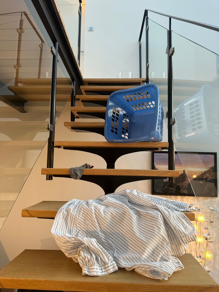 Soudain, un bruit long et mat, en cascade interminable. Un bruit de fracture nette assorti d’un gémissement rauque et étouffé dans un souffle. Très bref. Une chemise et une chaussette qui volent au ralenti, parmi d’autres vêtements échappés de la bassine rose.